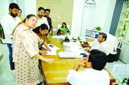 डीएम के कक्ष में नारेबाजी करते पहुंचे अभिभावक