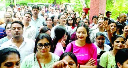 गाजियाबाद (युग करवट)। अभिभावकों की बिना अनुमति के स्कूल टाइम बढ़ाने पर आक्रोशित डीपीएसजी स्कूल के अभिभावकों ने सोमवार को जिला मुख्यालय पर चार घंटे तक प्रदर्शन किया। अभिभावक जिला प्रशासन से लगातार इस मामले में कार्रवाई की मांग पर अड़े रहे। सिटी मजिस्ट्रेट डॉ.संतोष उपाध्याय, बेसिक शिक्षा अधिकारी ओपी यादव, एसीपी सूर्यबलि मौर्य ने अभिभावकों को समझाने का प्रयास किया, लेकिन अभिभावक डीएम को बाहर बुलाकर वार्ता करने पर अड़े रहे।
