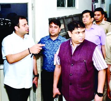 गाजियाबाद (युग करवट)। नगर निगम मुख्यालय के सभी तलों पर नगर आयुक्त विक्रमादित्य सिंह मलिक द्वारा औचक निरीक्षण किया गया। कार्य स्थलों की साफ सफाई तथा अधिकारियों और कर्मचारियों की उपस्थिति जांची गई। ग्राउंड फ्लोर पर बने जन सूचना कार्यालय पर लगे हुए दरवाजे के गिलास पर लगी हुई ब्लैक फिल्म को देखकर नगर आयुक्त ने नाराजगी जाहिर की तथा उसे तत्काल हटाने के निर्देश दिए। उनके साथ अपर नगर आयुक्त अवनींद्र कुमार, प्रभारी नजारत अनुज भी रहे।