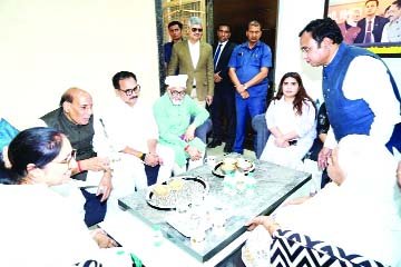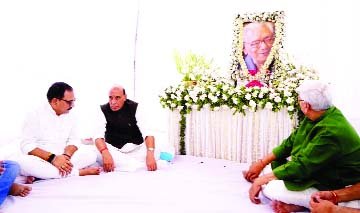 नोएडा (युग करवट)। भारतीय जनता पार्टी के दिल्ली प्रदेश के अध्यक्ष वीरेंद्र सचदेवा के पिता श्यामलाल सचदेवा के निधन की सूचना पाकर केंद्रीय रक्षा मंत्री राजनाथ सिंह शुक्रवार को दिल्ली स्थित उनके घर पर पहुंचे। उन्होंने शोक संतप्त परिवार के लोगों को ढांढस बंधाते हुए सांत्वना दी। वह करीब 1 घंटे तक उनके घर पर रहे। इस दौरान उन्होंने परिवार के सभी लोगों से बातचीत की।