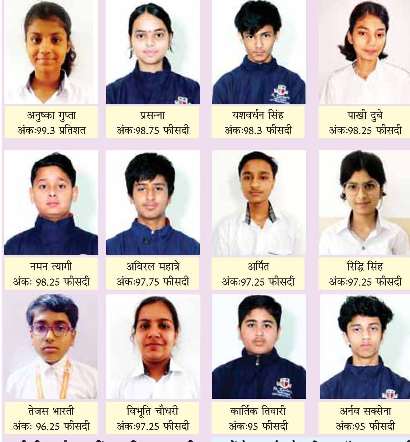 गाजियाबाद (युग करवट)सेंट जेवियर्स वल्र्ड स्कूल की प्रधानाचार्या रत्ना त्यागी ने दसवीं के जारी हुए परिणामों में स्कूल के छात्रों के प्रदर्शन पर खुशी जाहिर करते हुए कि चमकते हुए सितारों का प्रदर्शन देखकर अभिभूत हॅू।