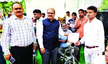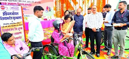 गाजियाबाद (युग करवट)। जिला प्रशासन व जिला दिव्यांगजन सशक्ति करण विभाग द्वारा दिव्यांग जन को ट्राईसाइकिल का वितरण किया गया। यह कार्यक्रम इंडियन ऑयल रिफाइनरी के सीआरएस फंड के माध्यम से किया गया जिसमें 106 दिव्यांगों को मोटराइज्ड ट्राइसाइकिल प्रदान की गई। इससे पूर्व एलिमको द्वारा एक विशेष कैंप का आयोजन किया गया जिसमें ट्राइसाइकिल के लिए दिव्यांगों को चिन्हित किया गया। सोमवार को विकास भवन में आयोजित कार्यक्रम में मुख्य अतिथि परियोजना निदेशक ग्राम्य विकास प्रदीप कुमार पाण्डेय, इंडियन ऑयल रिफाइनरी के कार्यकारी निदेशक आरआर राजे ने ट्राइसाइकिल दी। प्रदीप कुमार पाण्डेय ने कहा कि ऐसे कार्यक्रम समाज में सकारात्मक परिवर्तन लाने में सहायक सिद्ध होते हैं। आरआर राजे ने कहा कि