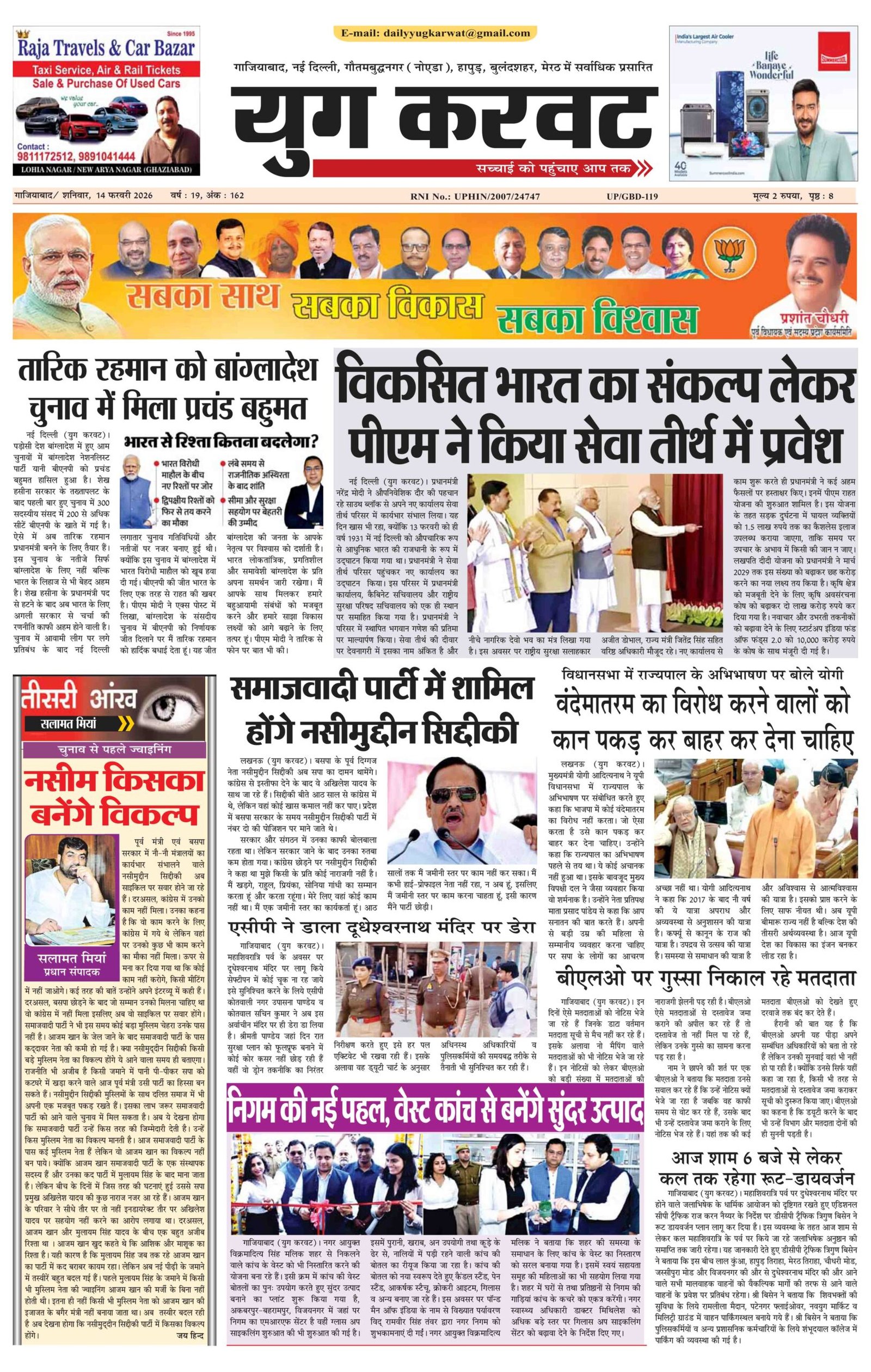 page1 View Larger Image न्यूज डेस्क, युग करवट2026-02-15T10:48:28+05:30February 15, 2026 10:48 am|सोशल मीडिया या ईमेल पर इस समाचार को साझा करेंFacebookTwitterLinkedInWhatsAppPinterestEmail Related Posts