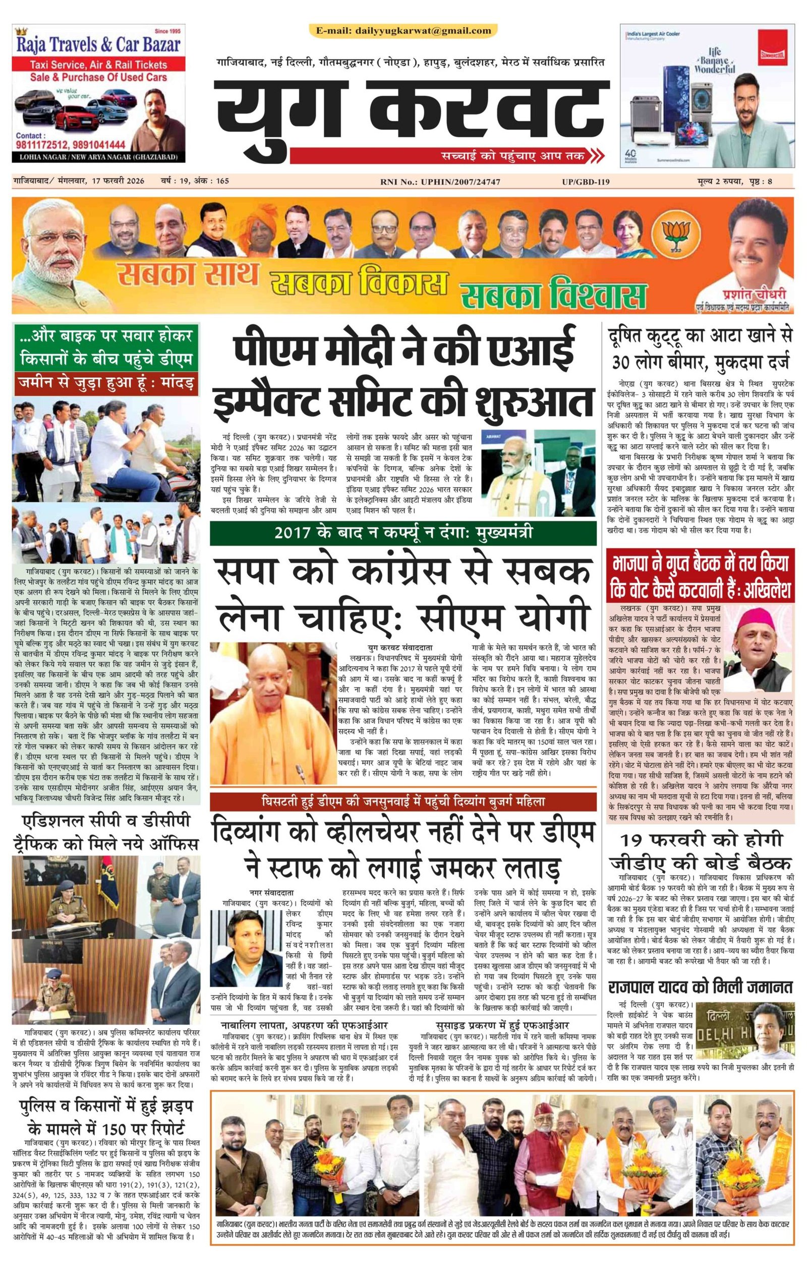 page1 View Larger Image न्यूज डेस्क, युग करवट2026-02-17T11:05:30+05:30February 17, 2026 11:05 am|सोशल मीडिया या ईमेल पर इस समाचार को साझा करेंFacebookTwitterLinkedInWhatsAppPinterestEmail Related Posts