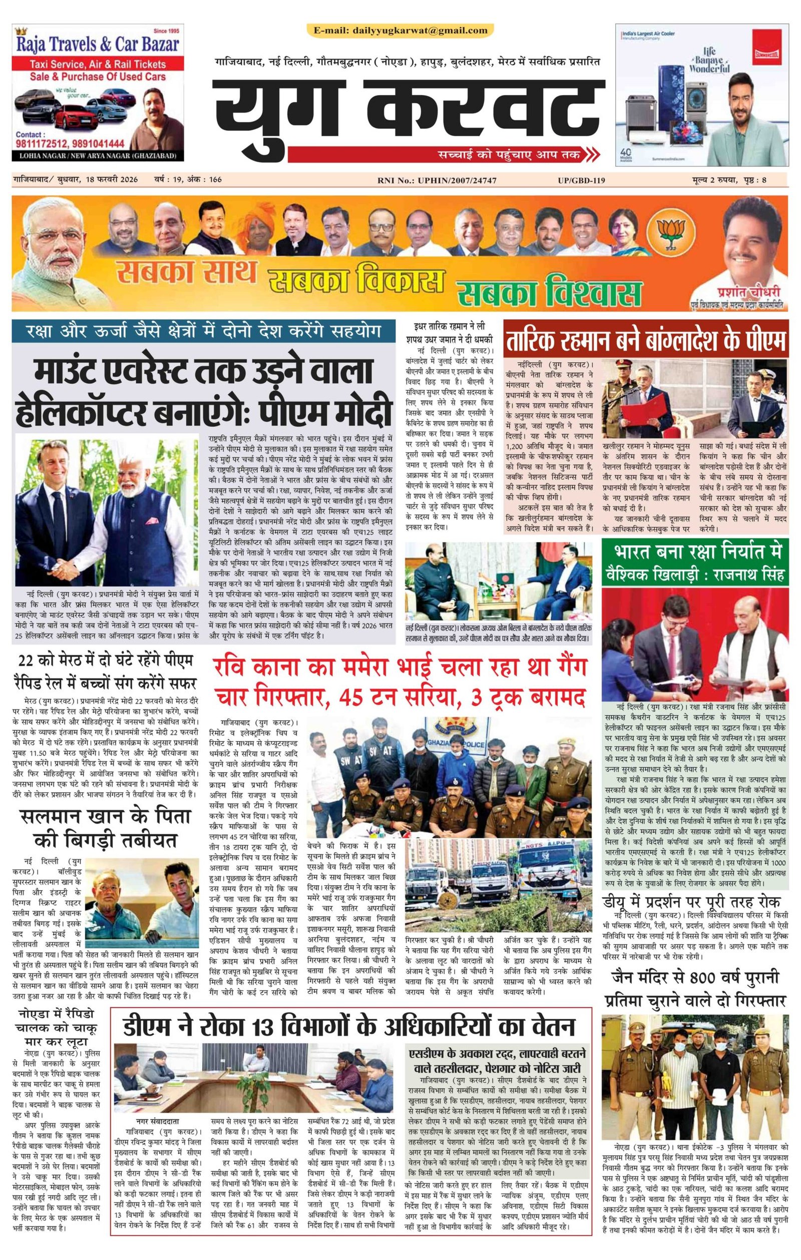 page1 View Larger Image न्यूज डेस्क, युग करवट2026-02-18T11:12:22+05:30February 18, 2026 11:12 am|सोशल मीडिया या ईमेल पर इस समाचार को साझा करेंFacebookTwitterLinkedInWhatsAppPinterestEmail Related Posts