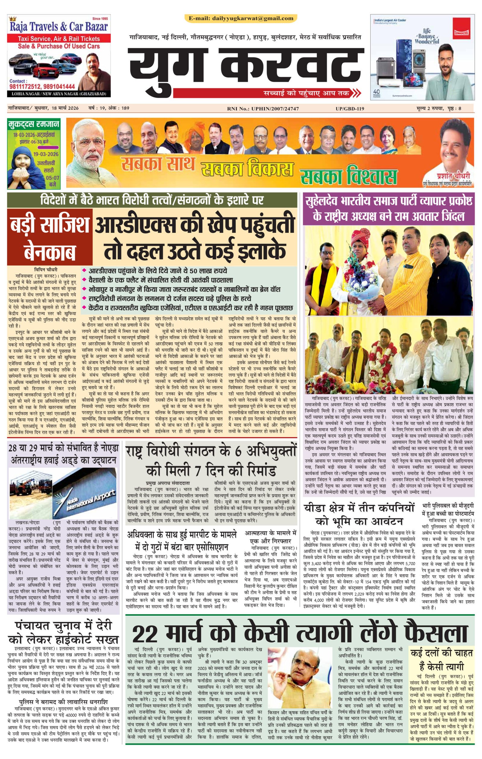 page1 View Larger Image न्यूज डेस्क, युग करवट2026-03-18T11:04:14+05:30March 18, 2026 11:04 am|सोशल मीडिया या ईमेल पर इस समाचार को साझा करेंFacebookTwitterLinkedInWhatsAppPinterestEmail Related Posts