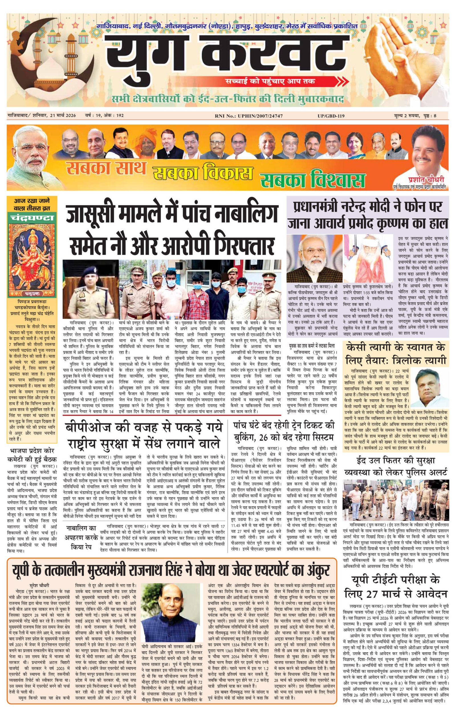 page1 View Larger Image न्यूज डेस्क, युग करवट2026-03-22T13:24:54+05:30March 22, 2026 1:24 pm|सोशल मीडिया या ईमेल पर इस समाचार को साझा करेंFacebookTwitterLinkedInWhatsAppPinterestEmail Related Posts