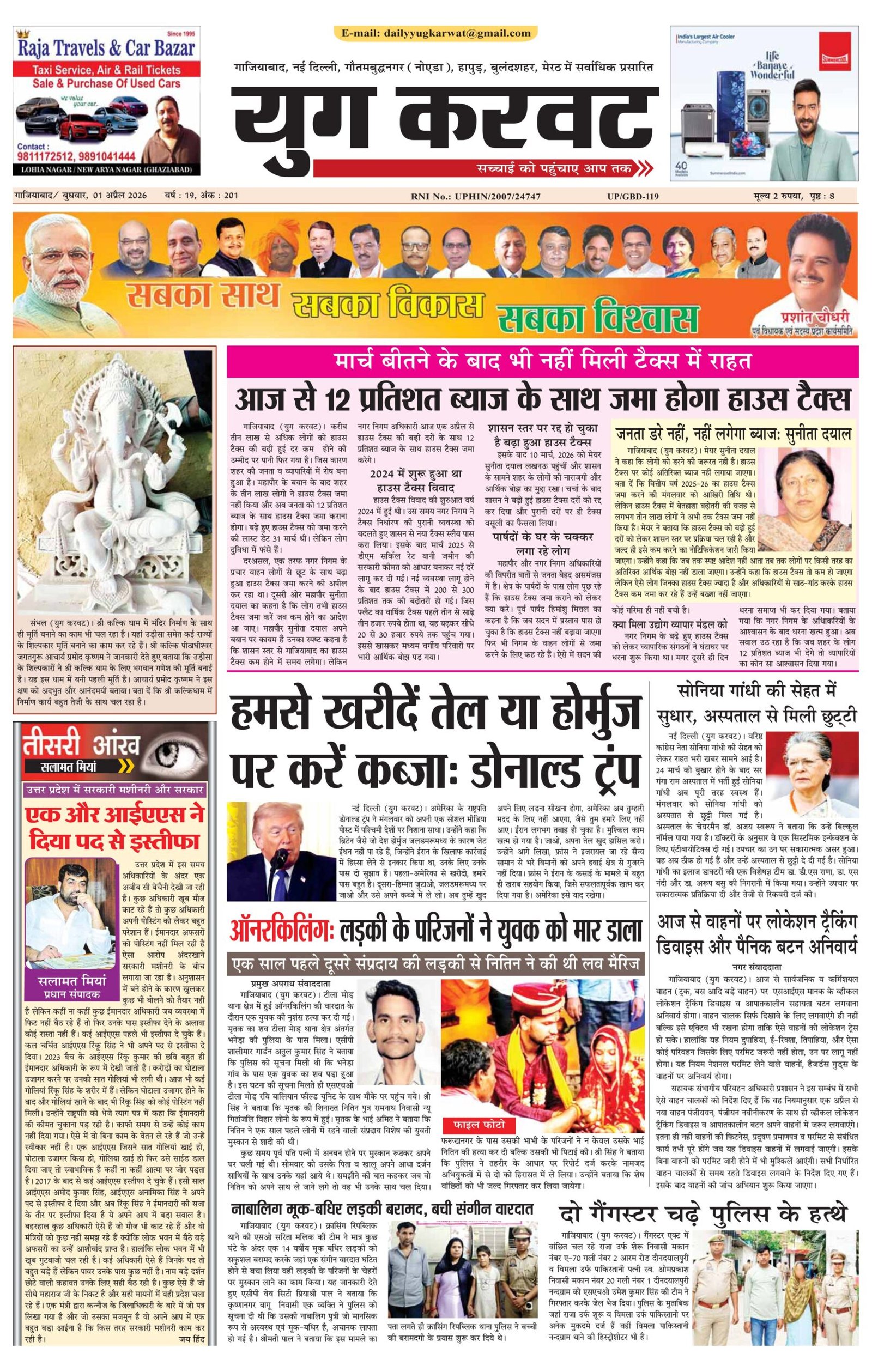 page1 View Larger Image न्यूज डेस्क, युग करवट2026-04-01T11:06:42+05:30April 1, 2026 11:06 am|सोशल मीडिया या ईमेल पर इस समाचार को साझा करेंFacebookTwitterLinkedInWhatsAppPinterestEmail Related Posts