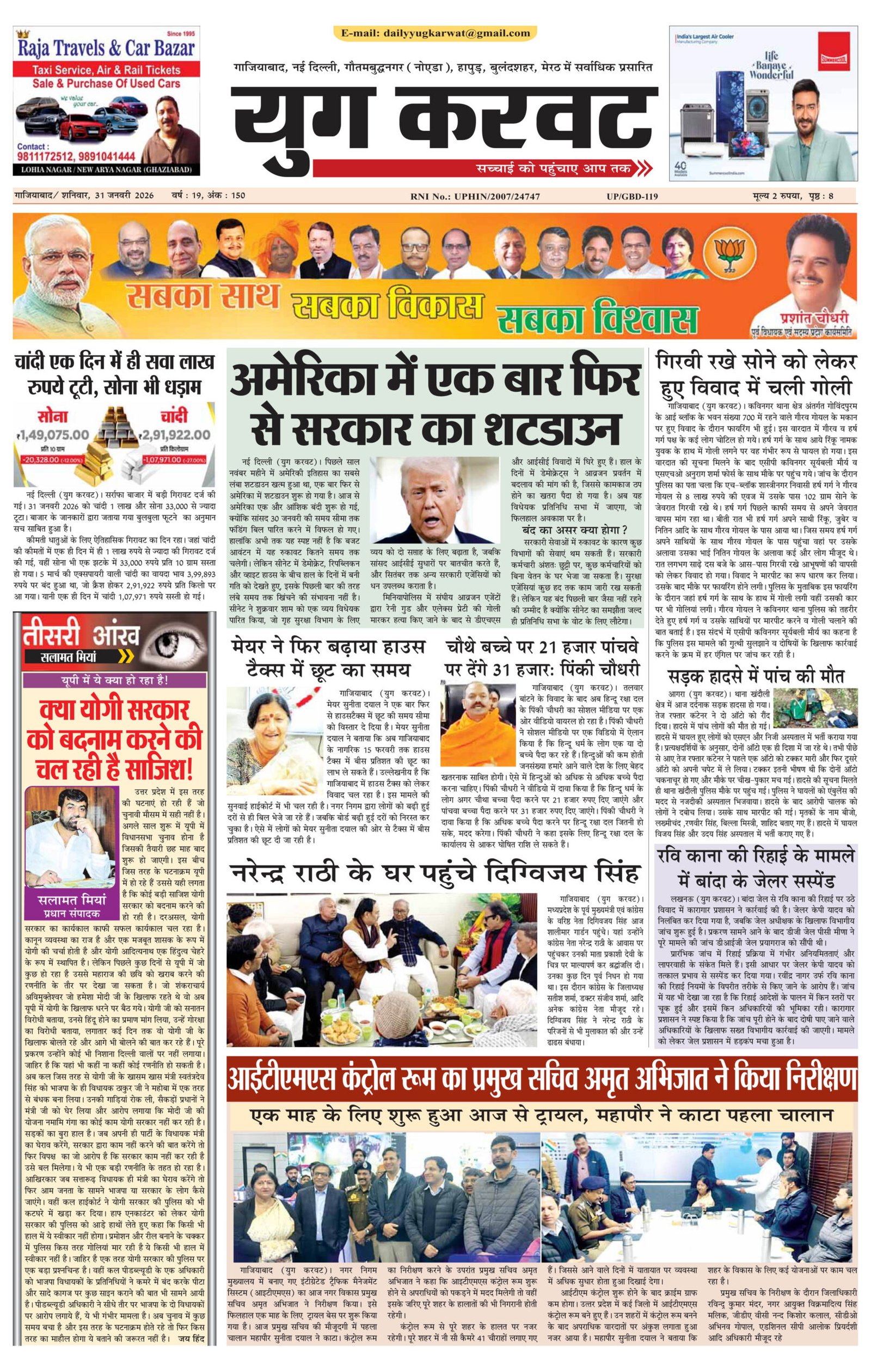 page1 View Larger Image न्यूज डेस्क, युग करवट2026-01-31T15:52:54+05:30January 31, 2026 3:52 pm|सोशल मीडिया या ईमेल पर इस समाचार को साझा करेंFacebookTwitterLinkedInWhatsAppPinterestEmail Related Posts