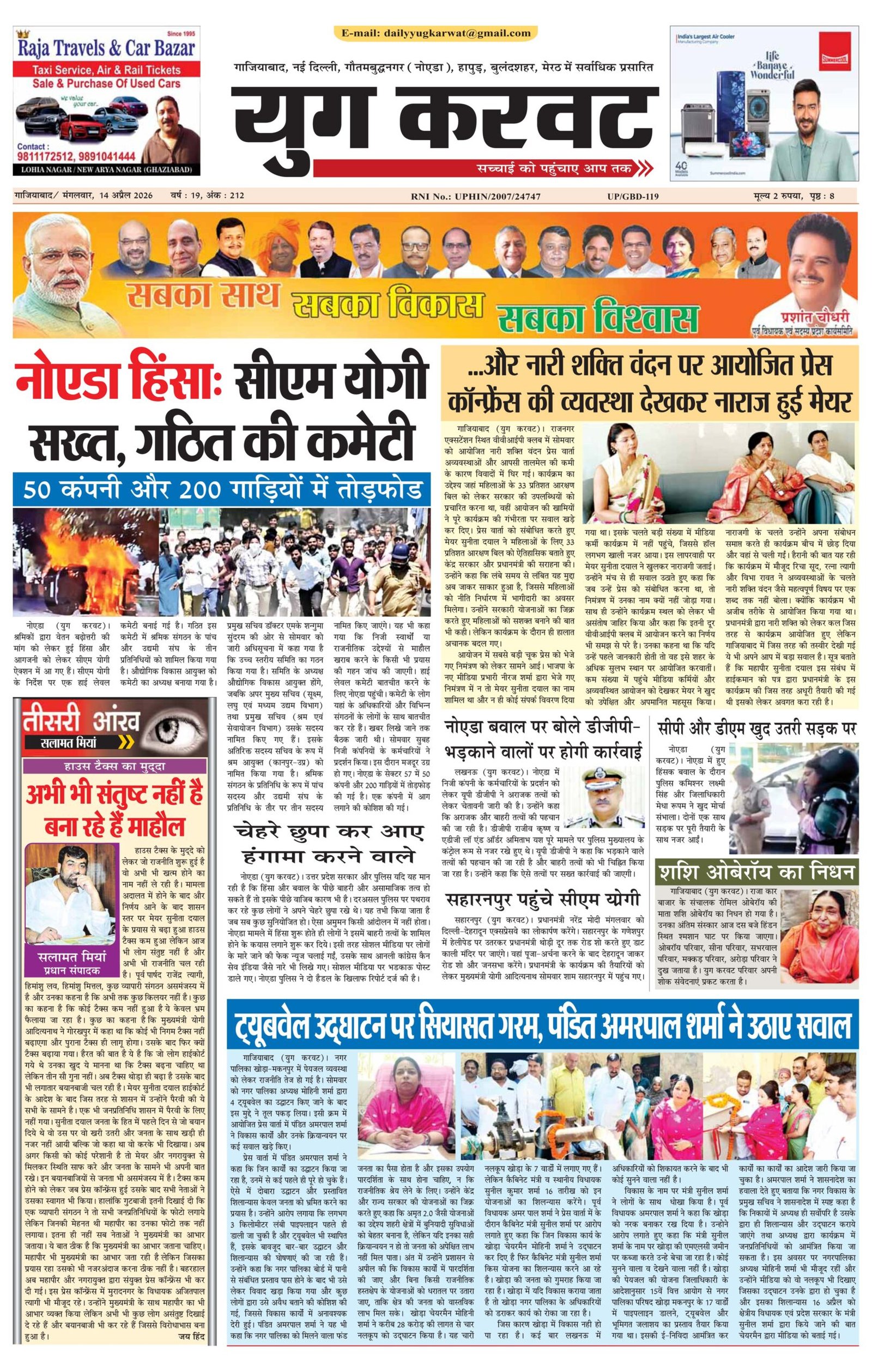 page1 View Larger Image न्यूज डेस्क, युग करवट2026-04-14T11:01:13+05:30April 14, 2026 11:01 am|सोशल मीडिया या ईमेल पर इस समाचार को साझा करेंFacebookTwitterLinkedInWhatsAppPinterestEmail Related Posts
