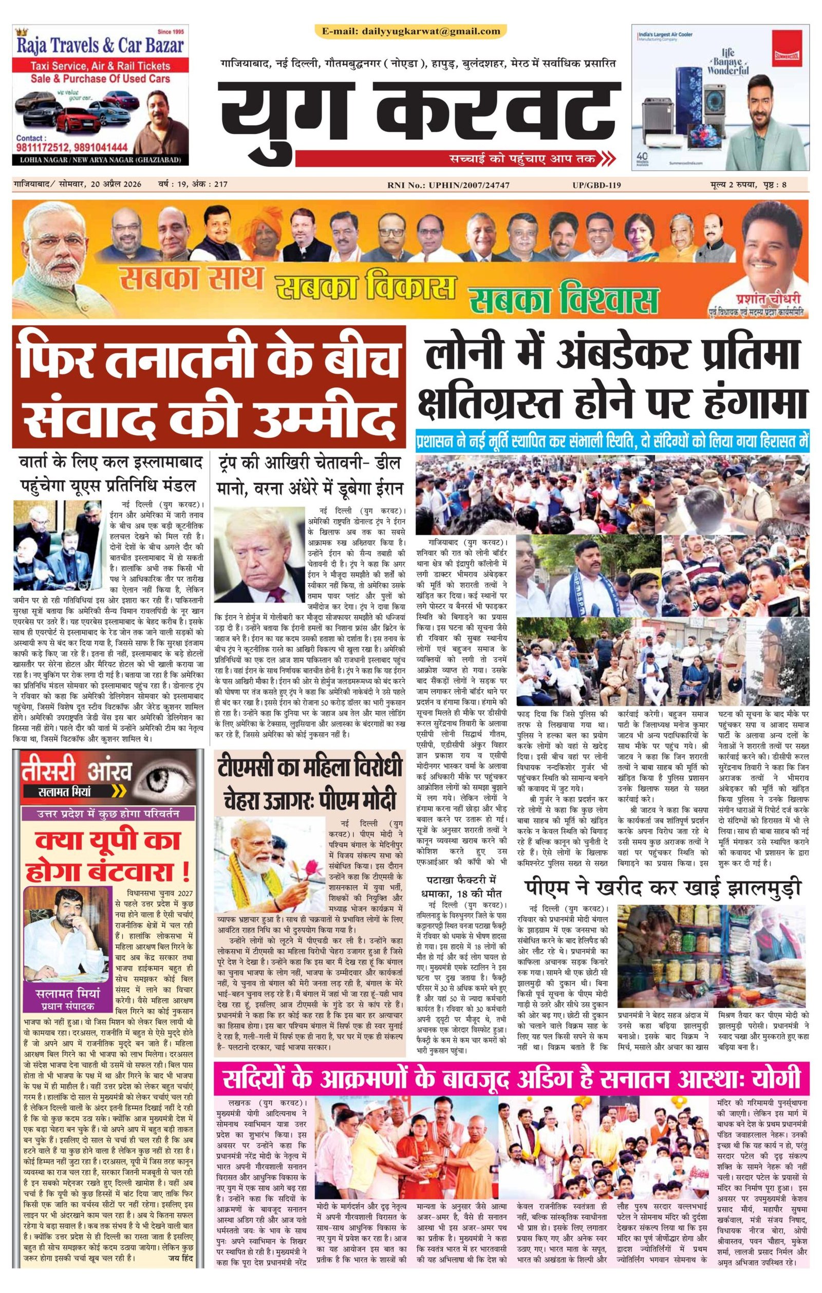 न्यूज डेस्क, युग करवट2026-04-20T11:05:29+05:30April 20, 2026 11:05 am|