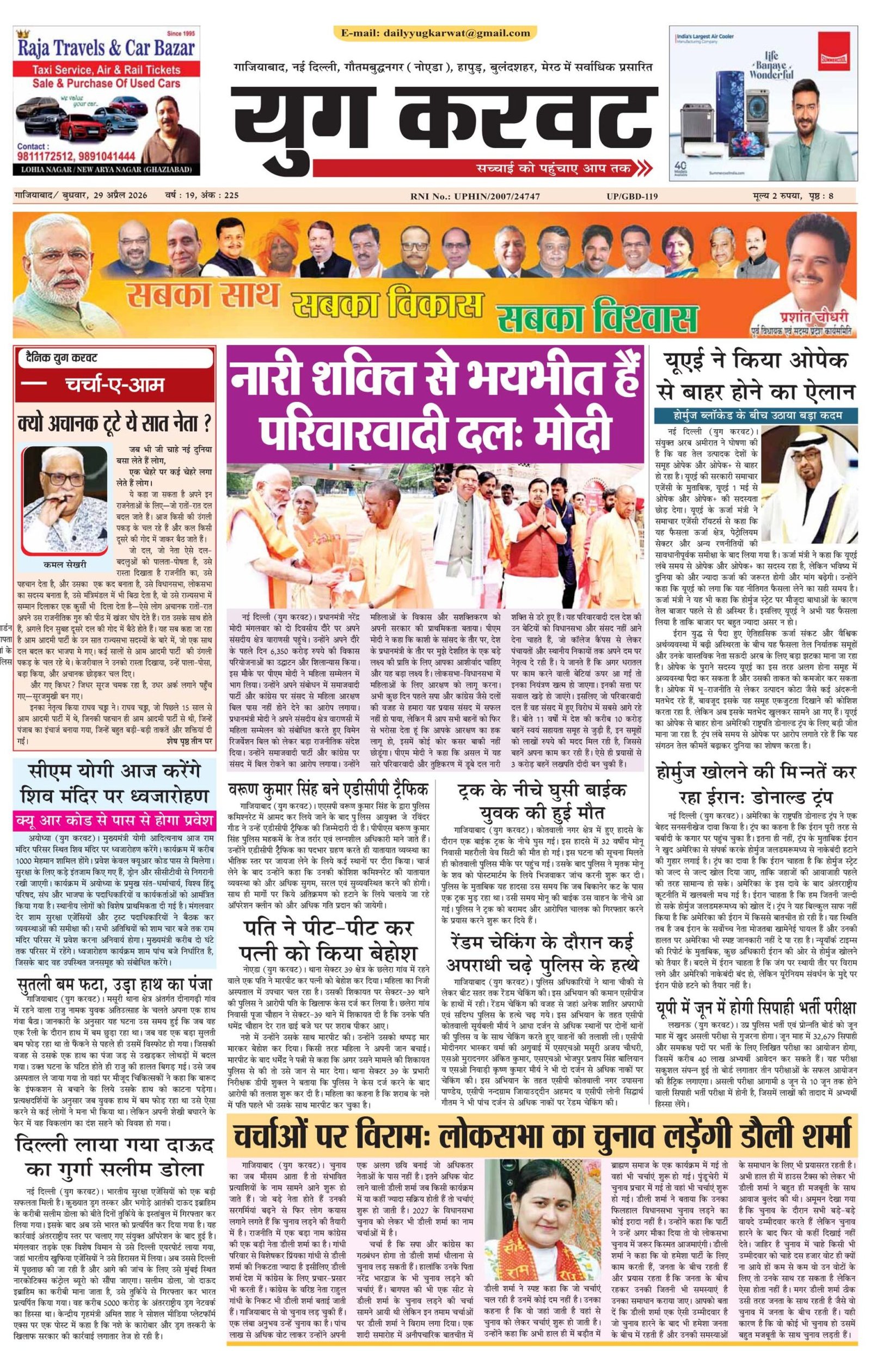 page1 View Larger Image न्यूज डेस्क, युग करवट2026-04-29T10:59:55+05:30April 29, 2026 10:59 am|सोशल मीडिया या ईमेल पर इस समाचार को साझा करेंFacebookTwitterLinkedInWhatsAppPinterestEmail Related Posts