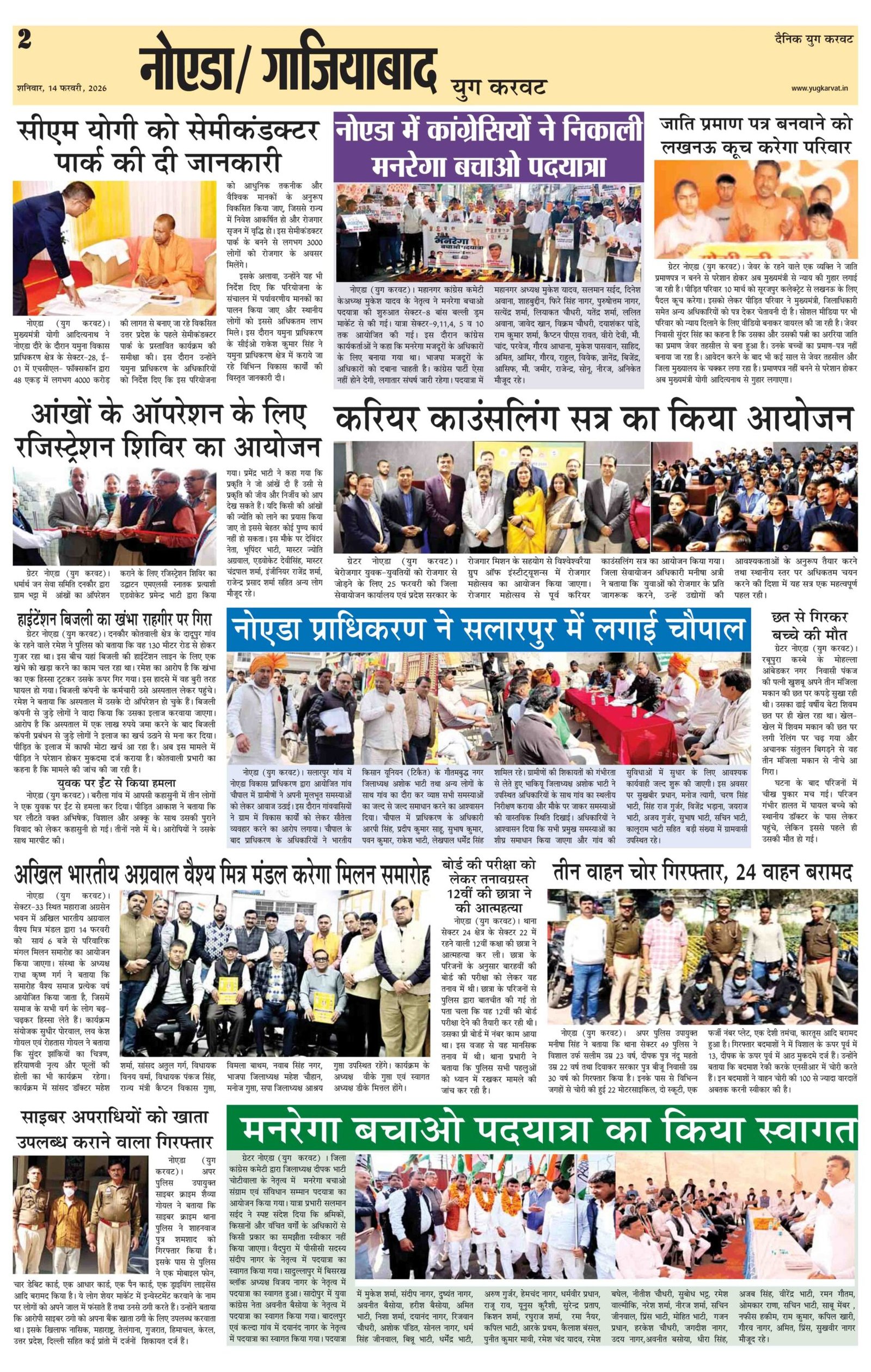 page2 View Larger Image न्यूज डेस्क, युग करवट2026-02-15T10:48:11+05:30February 15, 2026 10:48 am|सोशल मीडिया या ईमेल पर इस समाचार को साझा करेंFacebookTwitterLinkedInWhatsAppPinterestEmail Related Posts