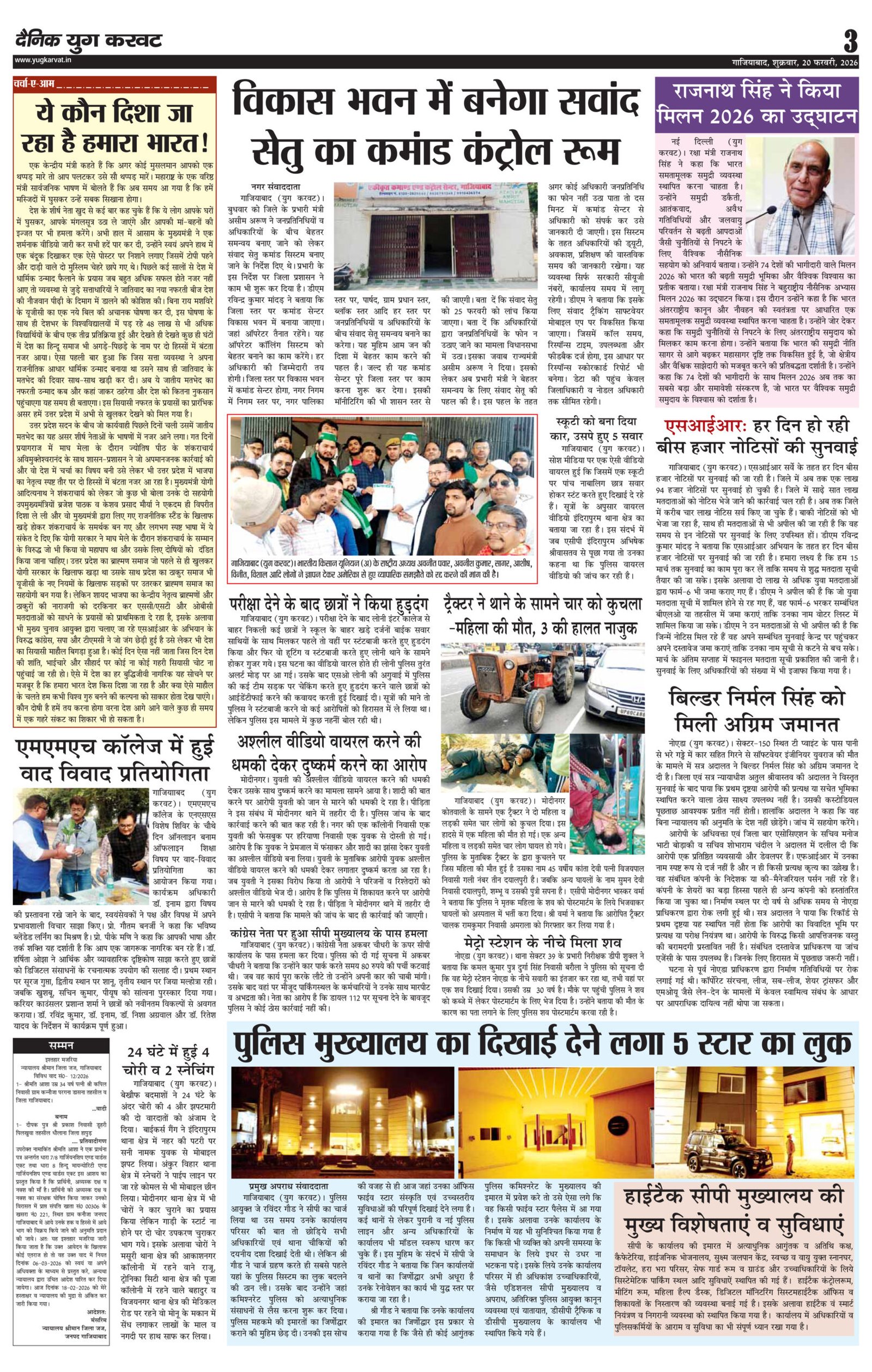 page3 View Larger Image न्यूज डेस्क, युग करवट2026-02-20T10:52:26+05:30February 20, 2026 10:52 am|सोशल मीडिया या ईमेल पर इस समाचार को साझा करेंFacebookTwitterLinkedInWhatsAppPinterestEmail Related Posts