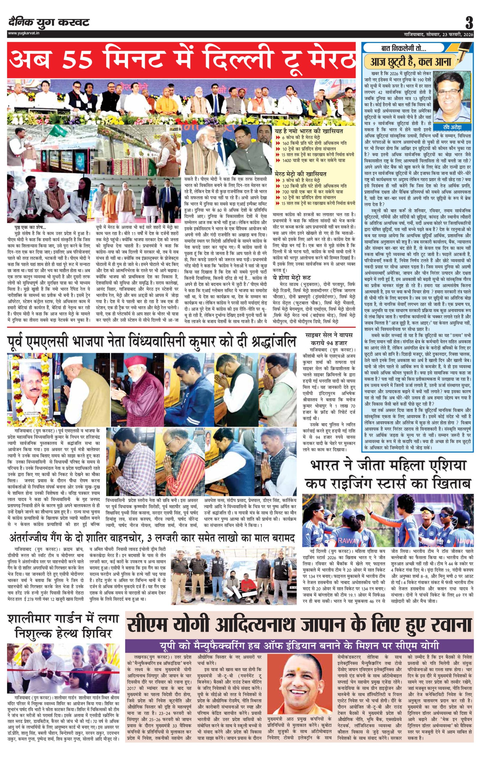 page3 View Larger Image न्यूज डेस्क, युग करवट2026-02-23T10:40:37+05:30February 23, 2026 10:40 am|सोशल मीडिया या ईमेल पर इस समाचार को साझा करेंFacebookTwitterLinkedInWhatsAppPinterestEmail Related Posts