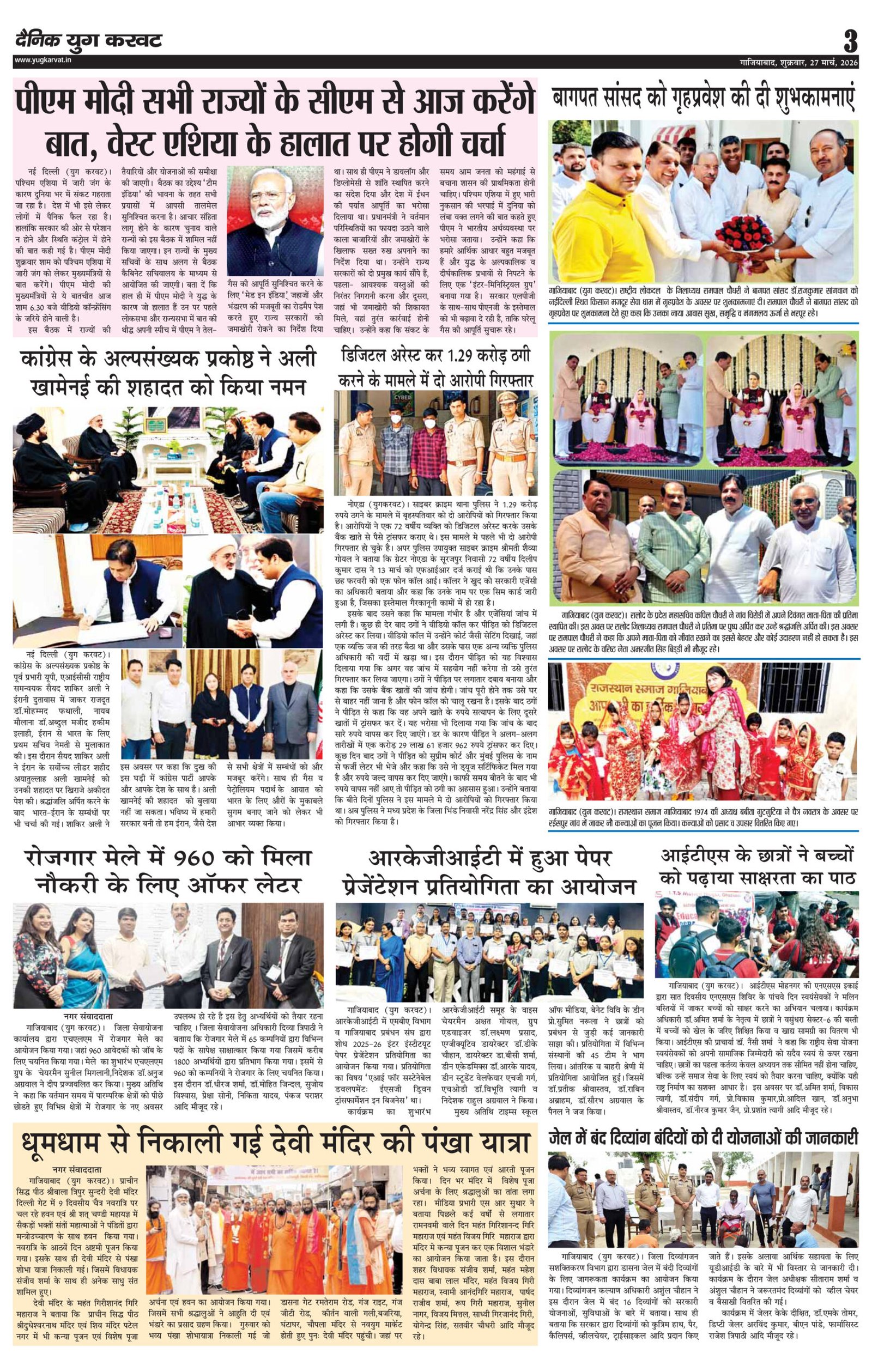 page3 View Larger Image न्यूज डेस्क, युग करवट2026-03-27T10:49:07+05:30March 27, 2026 10:49 am|सोशल मीडिया या ईमेल पर इस समाचार को साझा करेंFacebookTwitterLinkedInWhatsAppPinterestEmail Related Posts