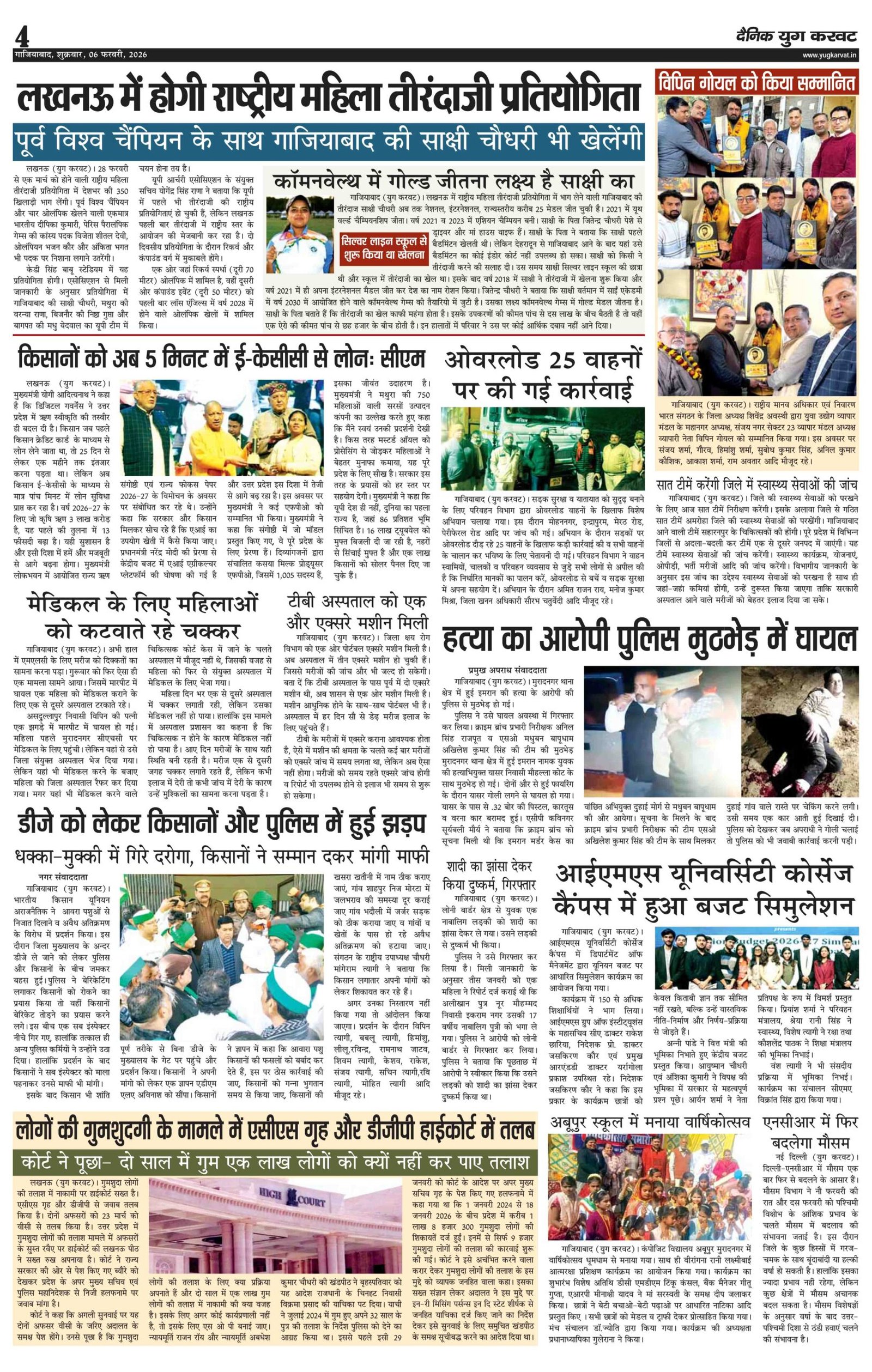 page4 View Larger Image न्यूज डेस्क, युग करवट2026-02-06T11:15:55+05:30February 6, 2026 11:15 am|सोशल मीडिया या ईमेल पर इस समाचार को साझा करेंFacebookTwitterLinkedInWhatsAppPinterestEmail Related Posts