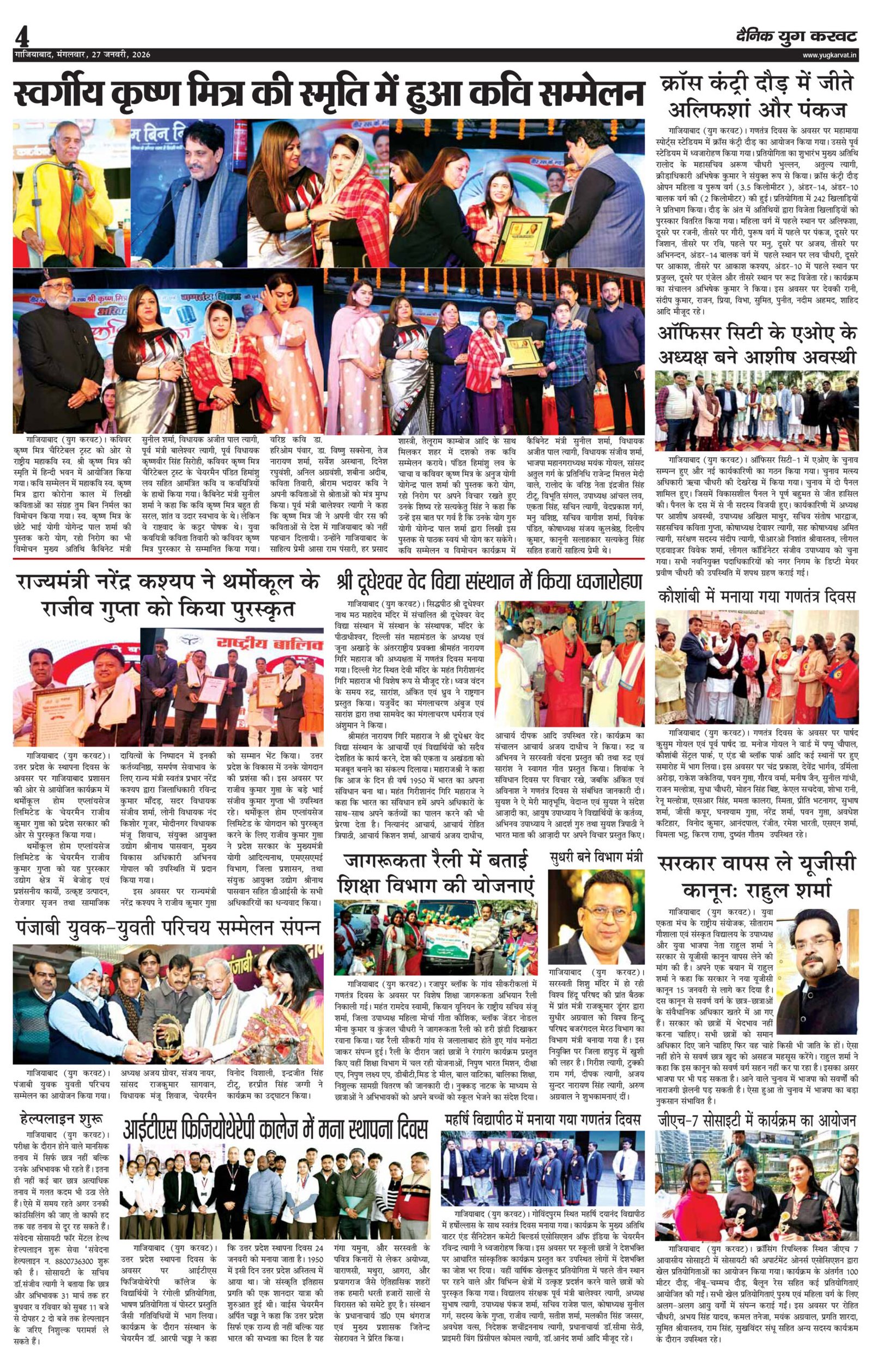 page4 View Larger Image न्यूज डेस्क, युग करवट2026-01-27T13:58:23+05:30January 27, 2026 1:58 pm|सोशल मीडिया या ईमेल पर इस समाचार को साझा करेंFacebookTwitterLinkedInWhatsAppPinterestEmail Related Posts
