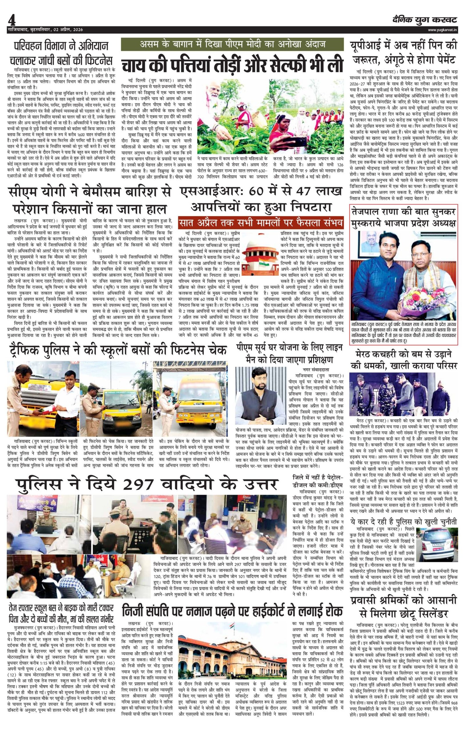 page4 View Larger Image न्यूज डेस्क, युग करवट2026-04-02T10:54:30+05:30April 2, 2026 10:54 am|सोशल मीडिया या ईमेल पर इस समाचार को साझा करेंFacebookTwitterLinkedInWhatsAppPinterestEmail Related Posts