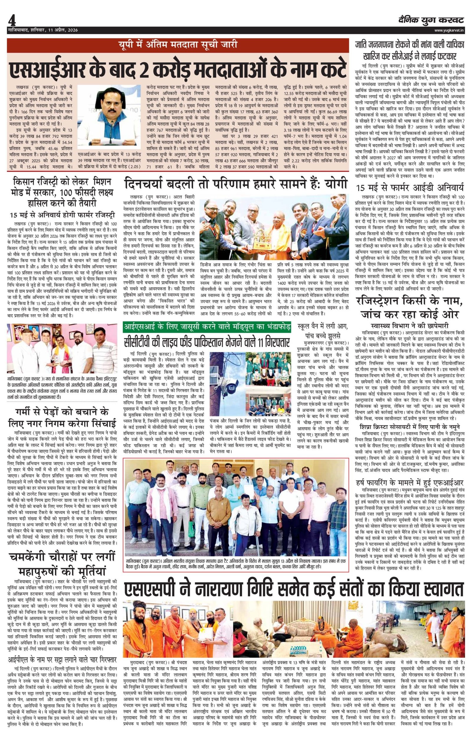 page4 View Larger Image न्यूज डेस्क, युग करवट2026-04-12T11:08:29+05:30April 12, 2026 11:08 am|सोशल मीडिया या ईमेल पर इस समाचार को साझा करेंFacebookTwitterLinkedInWhatsAppPinterestEmail Related Posts