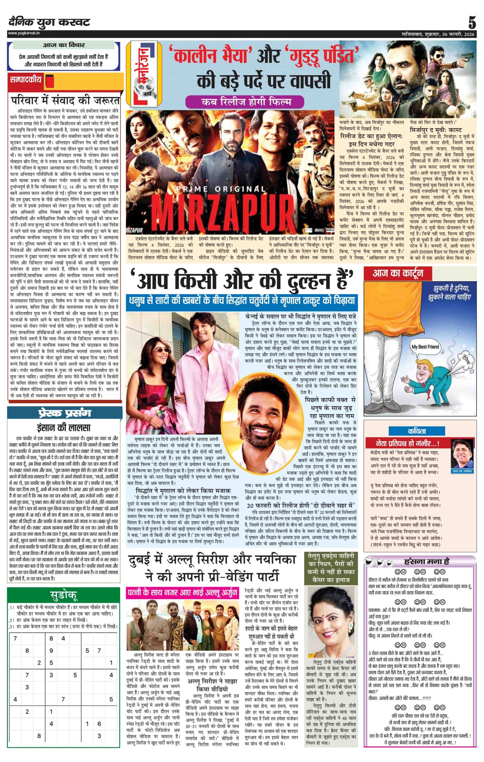 page5 View Larger Image न्यूज डेस्क, युग करवट2026-02-06T11:15:35+05:30February 6, 2026 11:15 am|सोशल मीडिया या ईमेल पर इस समाचार को साझा करेंFacebookTwitterLinkedInWhatsAppPinterestEmail Related Posts