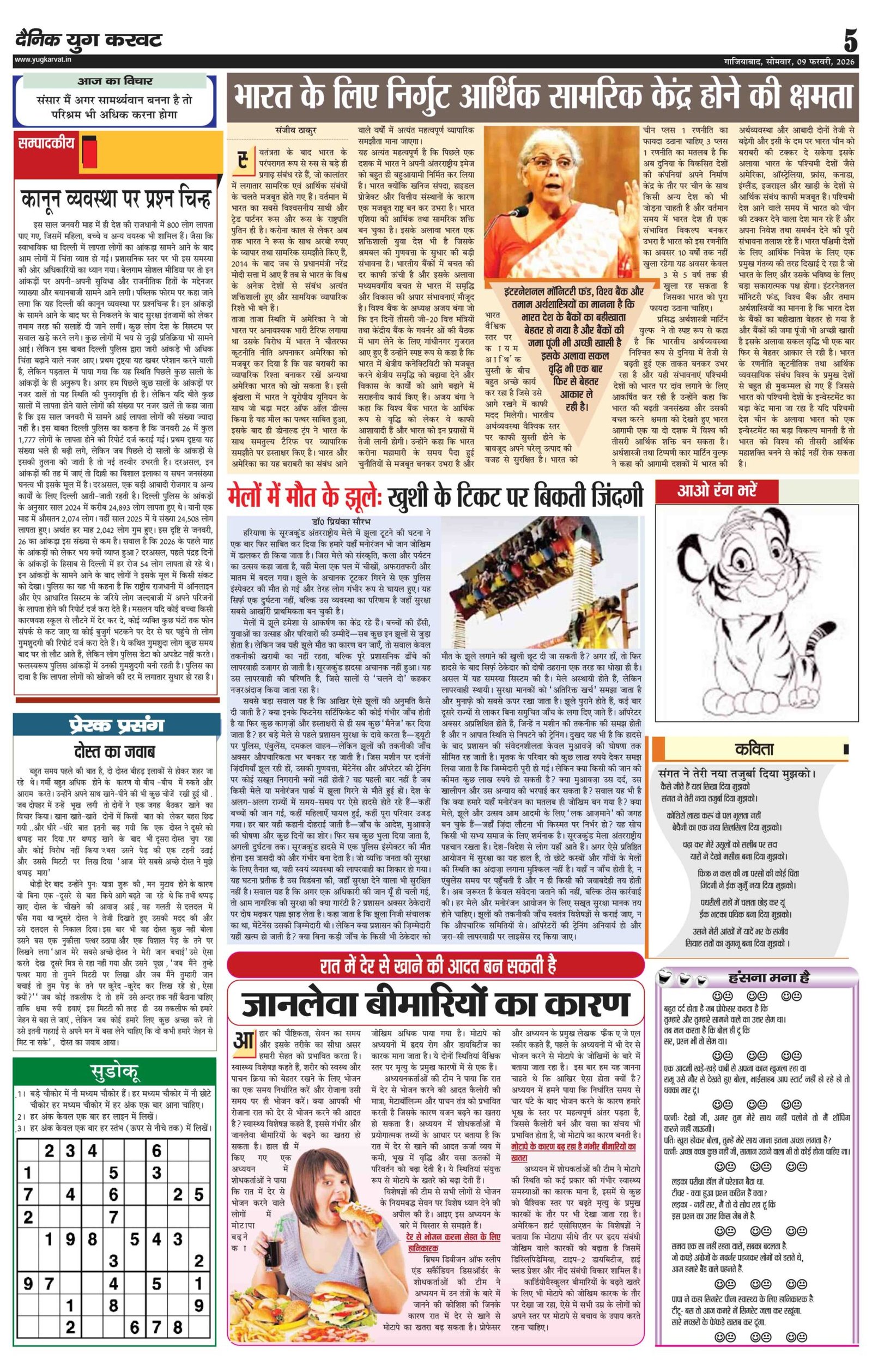 page5 View Larger Image न्यूज डेस्क, युग करवट2026-02-09T10:46:50+05:30February 9, 2026 10:46 am|सोशल मीडिया या ईमेल पर इस समाचार को साझा करेंFacebookTwitterLinkedInWhatsAppPinterestEmail Related Posts