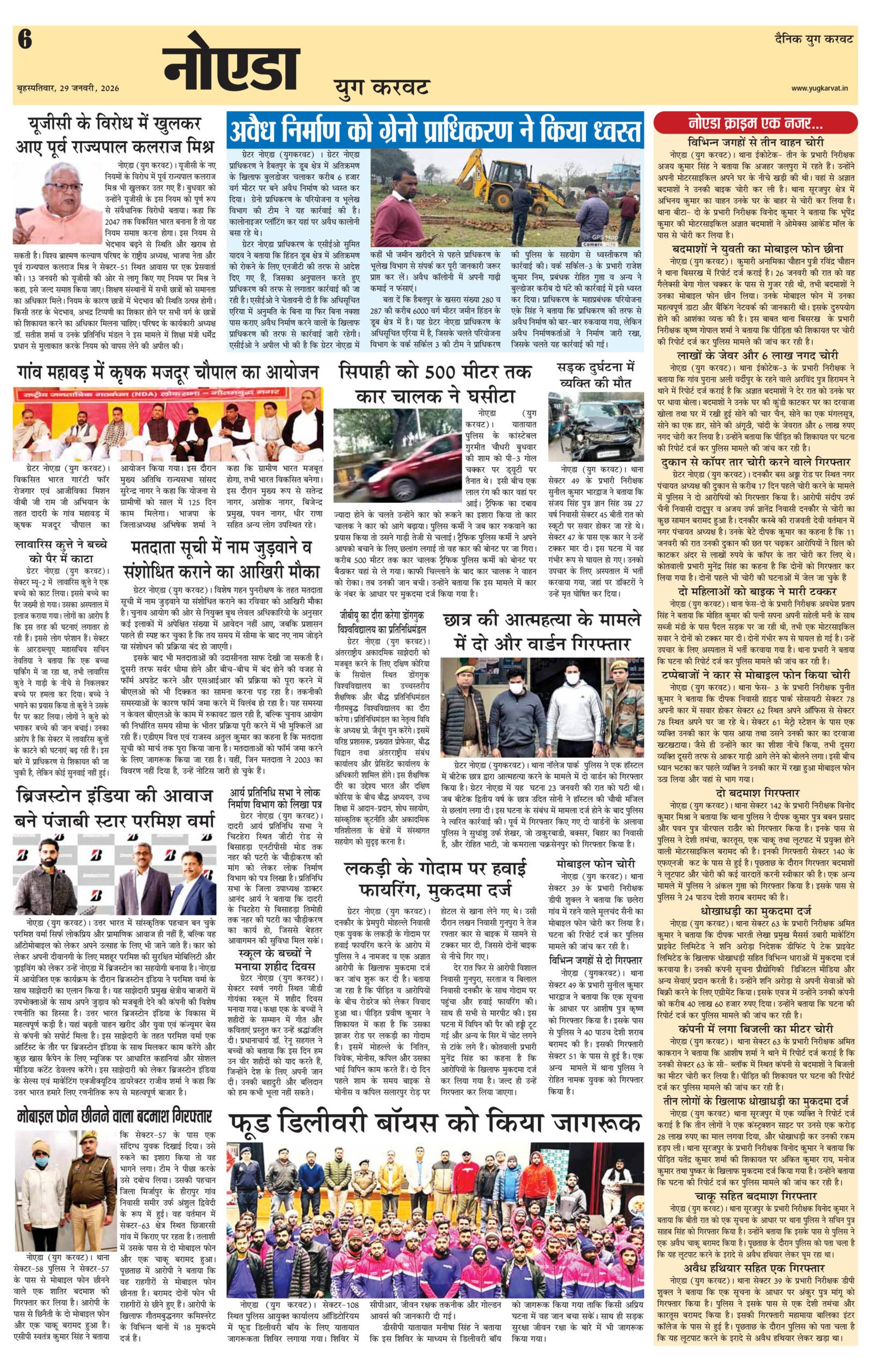 page6 View Larger Image न्यूज डेस्क, युग करवट2026-01-29T15:41:51+05:30January 29, 2026 3:41 pm|सोशल मीडिया या ईमेल पर इस समाचार को साझा करेंFacebookTwitterLinkedInWhatsAppPinterestEmail Related Posts