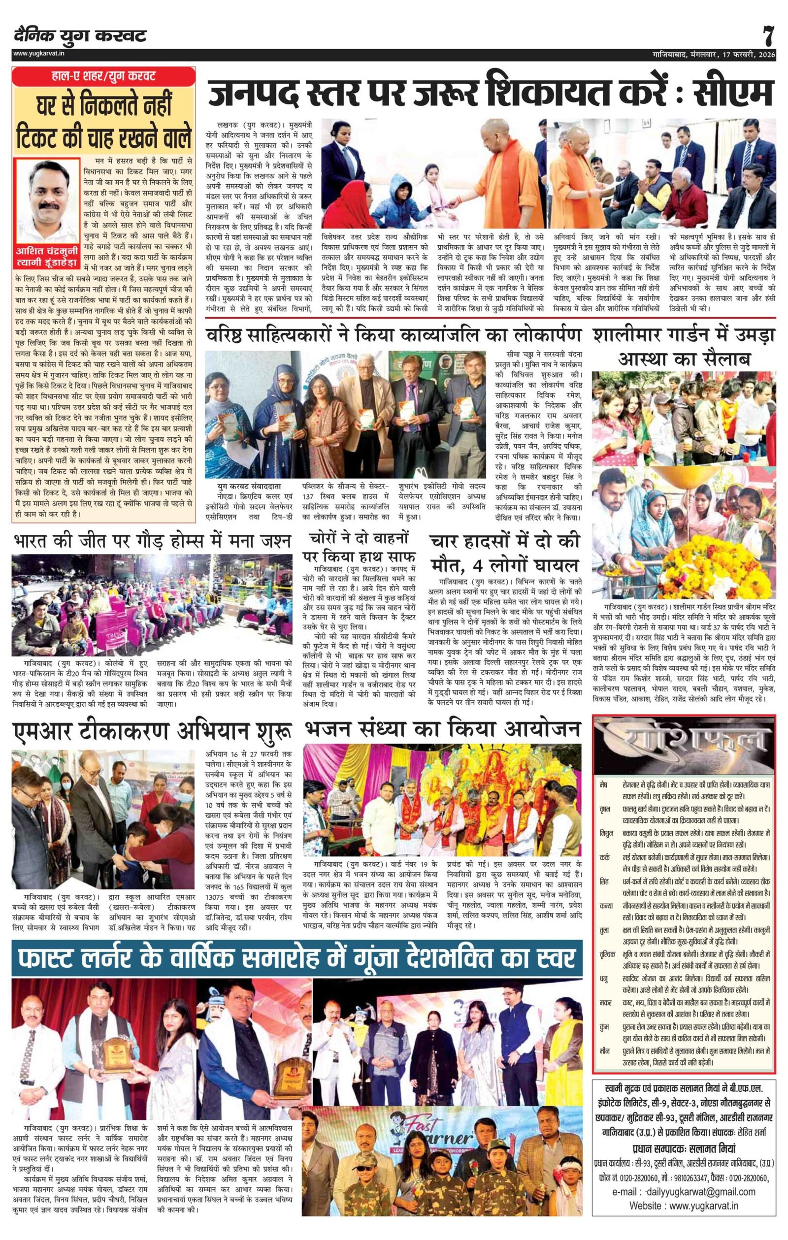 page7 View Larger Image न्यूज डेस्क, युग करवट2026-02-17T11:03:17+05:30February 17, 2026 11:03 am|सोशल मीडिया या ईमेल पर इस समाचार को साझा करेंFacebookTwitterLinkedInWhatsAppPinterestEmail Related Posts