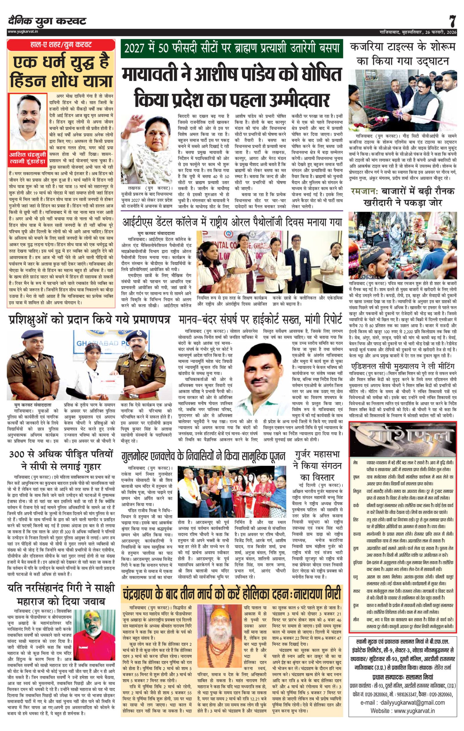 page7 View Larger Image न्यूज डेस्क, युग करवट2026-02-26T11:02:50+05:30February 26, 2026 11:02 am|सोशल मीडिया या ईमेल पर इस समाचार को साझा करेंFacebookTwitterLinkedInWhatsAppPinterestEmail Related Posts