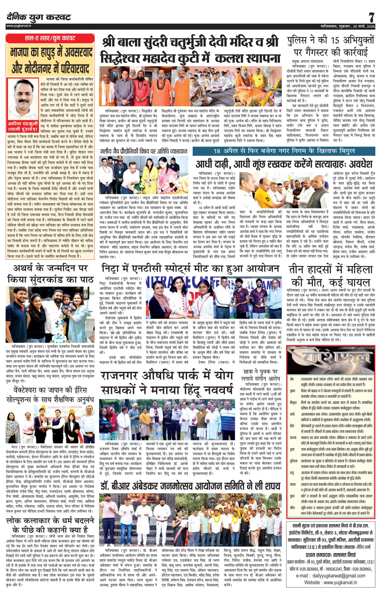 page7 View Larger Image न्यूज डेस्क, युग करवट2026-03-20T11:16:31+05:30March 20, 2026 11:16 am|सोशल मीडिया या ईमेल पर इस समाचार को साझा करेंFacebookTwitterLinkedInWhatsAppPinterestEmail Related Posts