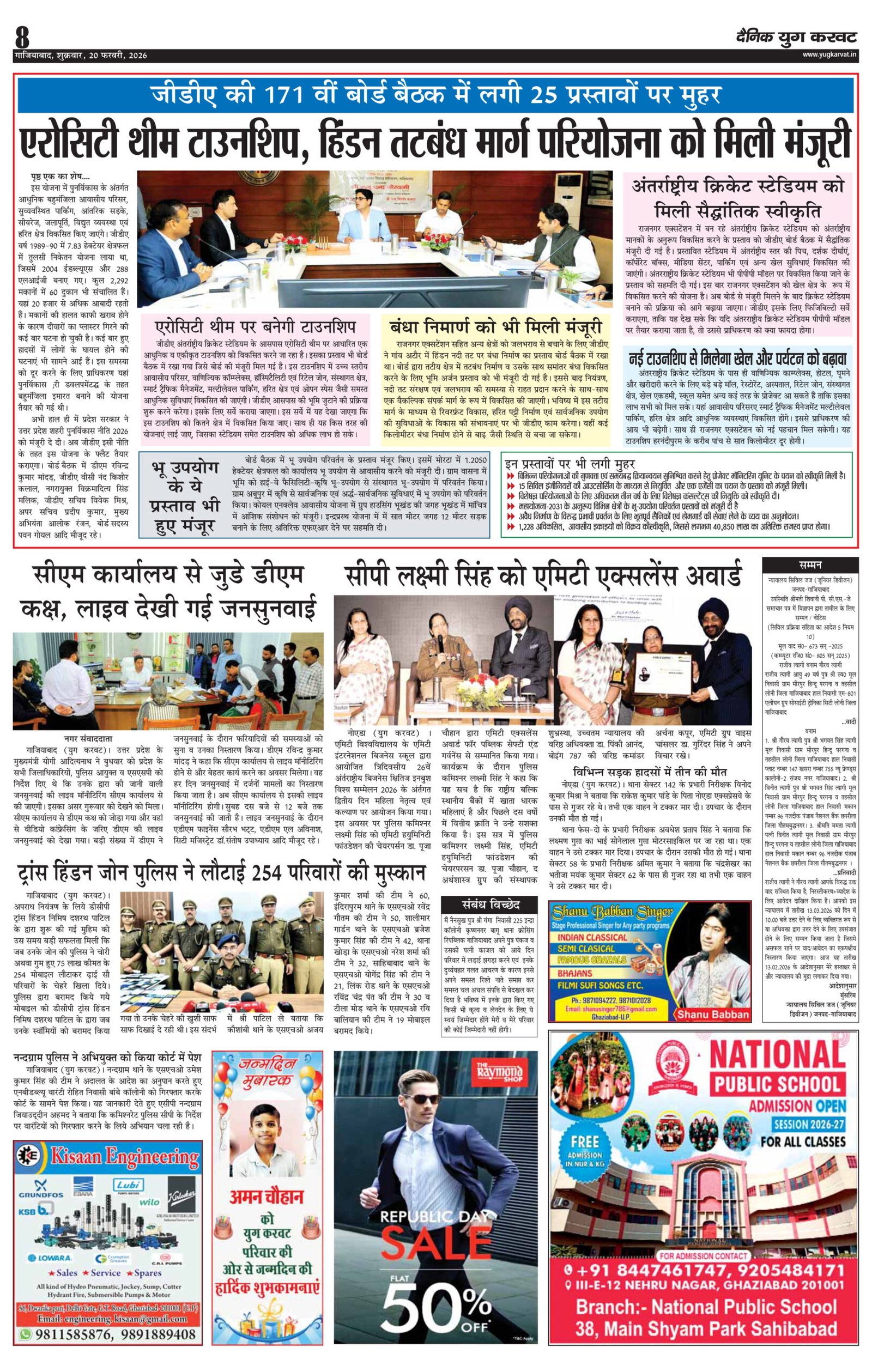 page8 View Larger Image न्यूज डेस्क, युग करवट2026-02-20T10:50:36+05:30February 20, 2026 10:50 am|सोशल मीडिया या ईमेल पर इस समाचार को साझा करेंFacebookTwitterLinkedInWhatsAppPinterestEmail Related Posts