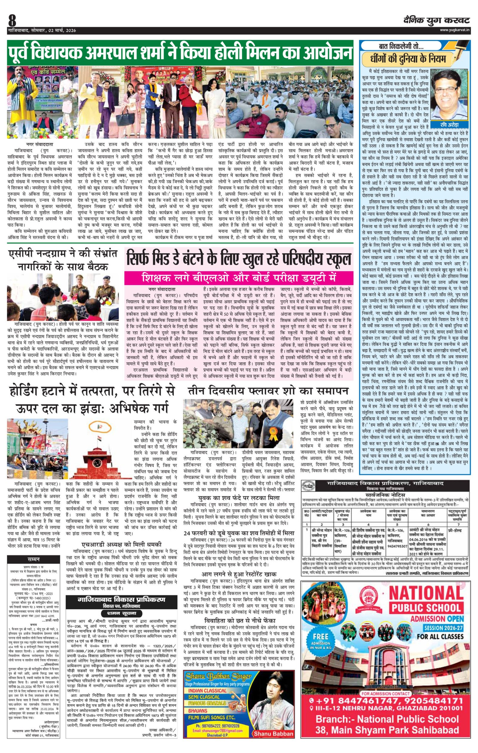 page8 View Larger Image न्यूज डेस्क, युग करवट2026-03-02T10:38:09+05:30March 2, 2026 10:38 am|सोशल मीडिया या ईमेल पर इस समाचार को साझा करेंFacebookTwitterLinkedInWhatsAppPinterestEmail Related Posts