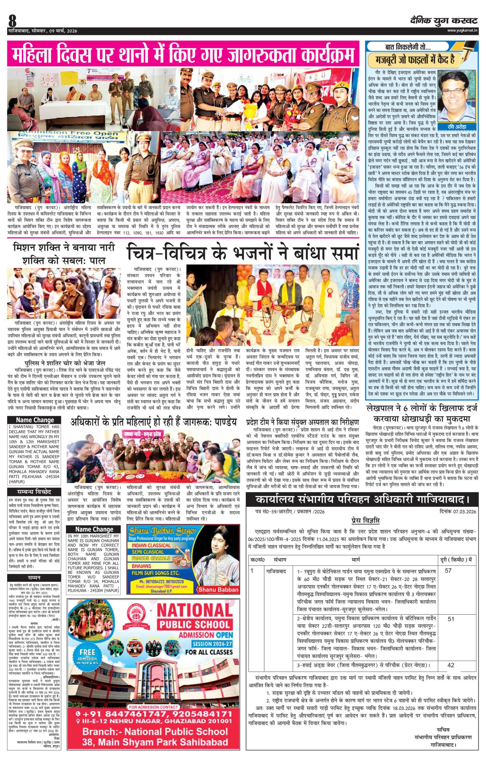page8 View Larger Image न्यूज डेस्क, युग करवट2026-03-09T10:59:09+05:30March 9, 2026 10:59 am|सोशल मीडिया या ईमेल पर इस समाचार को साझा करेंFacebookTwitterLinkedInWhatsAppPinterestEmail Related Posts