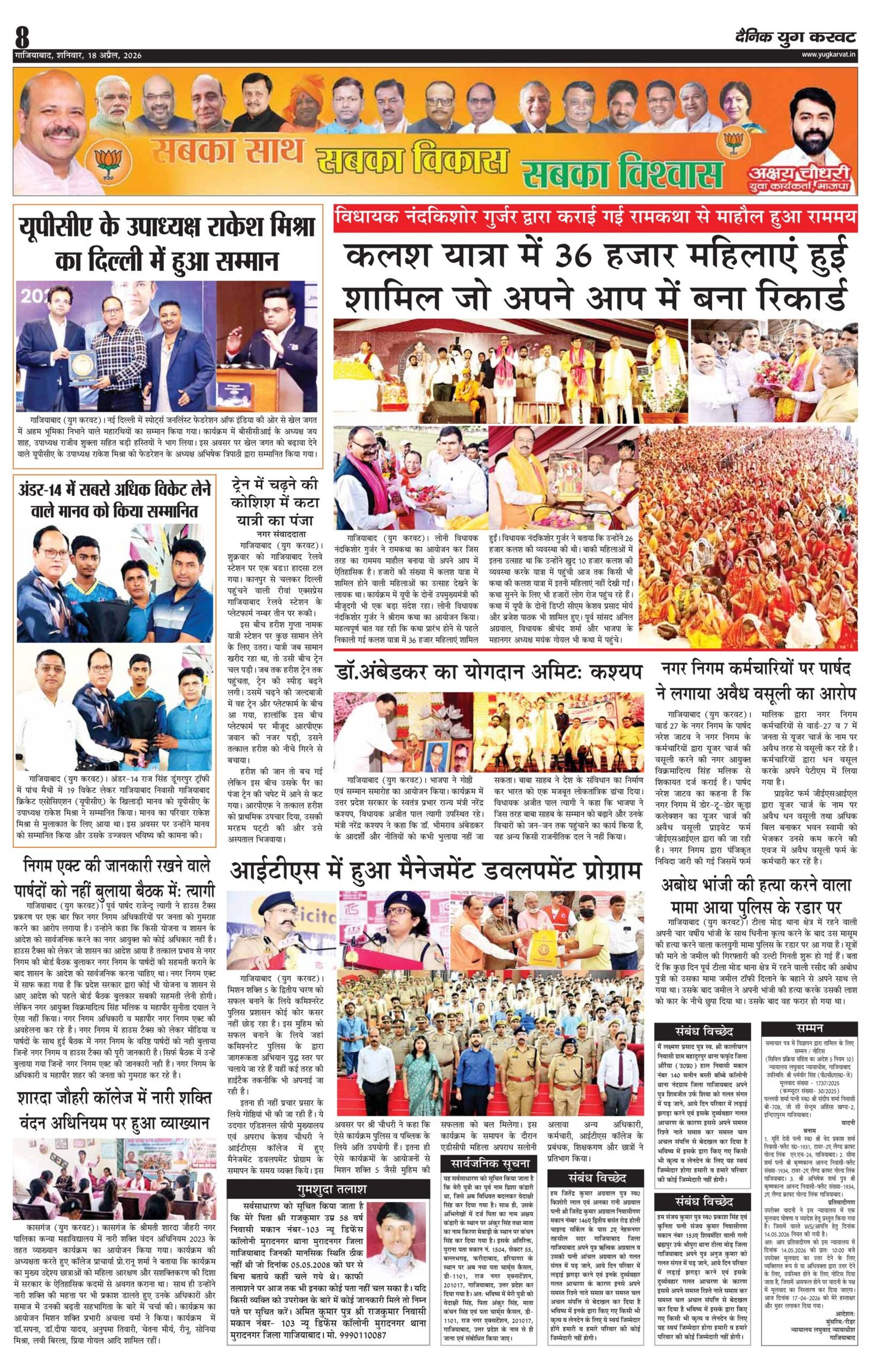 page8 View Larger Image न्यूज डेस्क, युग करवट2026-04-19T11:05:37+05:30April 19, 2026 11:05 am|सोशल मीडिया या ईमेल पर इस समाचार को साझा करेंFacebookTwitterLinkedInWhatsAppPinterestEmail Related Posts